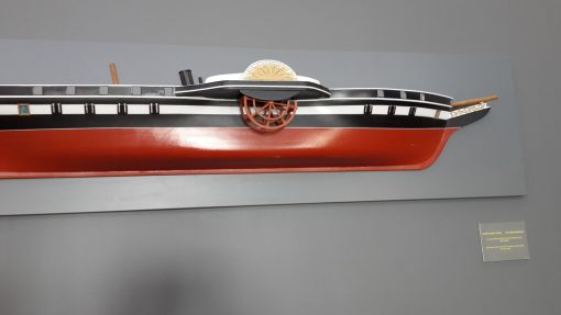 Üst kata çıkarken sağ ve sol duvarları süsleyen bu minik maketler ise; geçmiş dönemde kullanılmış olan vapur ve tekneleri sembolize ediyor. Tahmin edebileceğiniz gibi aşağıdaki makette bir yandan çarklı 🙂