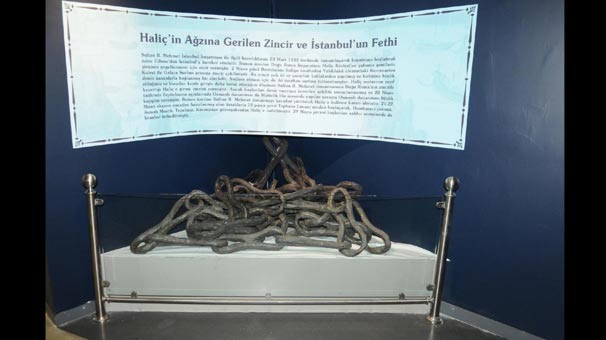 İşte müzede en çok dikkat çeken parça. İstanbul’un işgali sırasında Bizanslılar tarafından işgali engellemek için Haliç’e gerilen zincir.