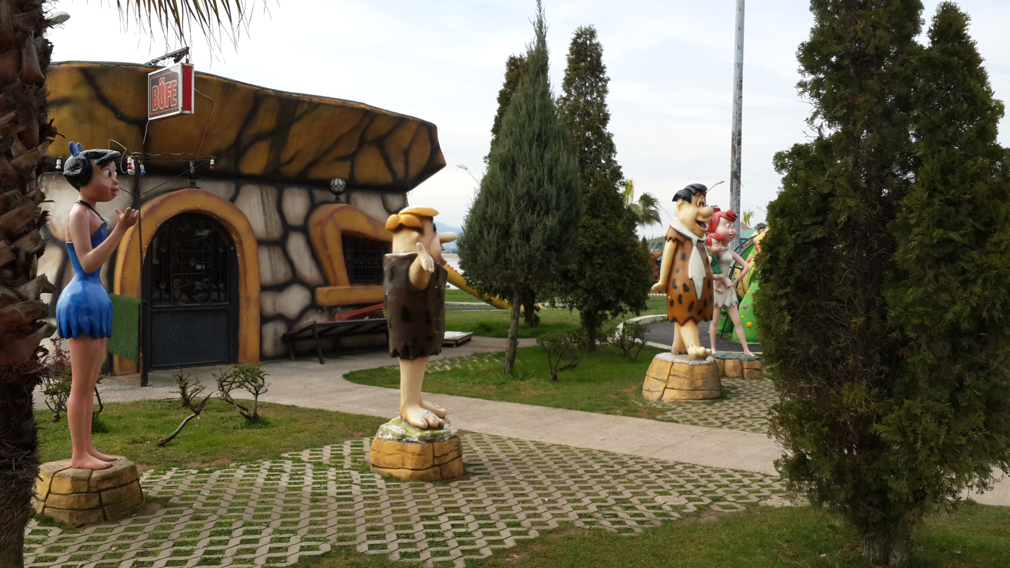Çocuklarımın ilgisini çekmeyen alanlardan biri, Taş Devri kahramanlarının bulunduğu yer oldu. Haklılar, bilmiyorlar çünkü. Ama ben biliyorum. Onları gördüğüme de çok memnun oldum. 90’larda çocuk olanlar parmak kaldırsın 🙂