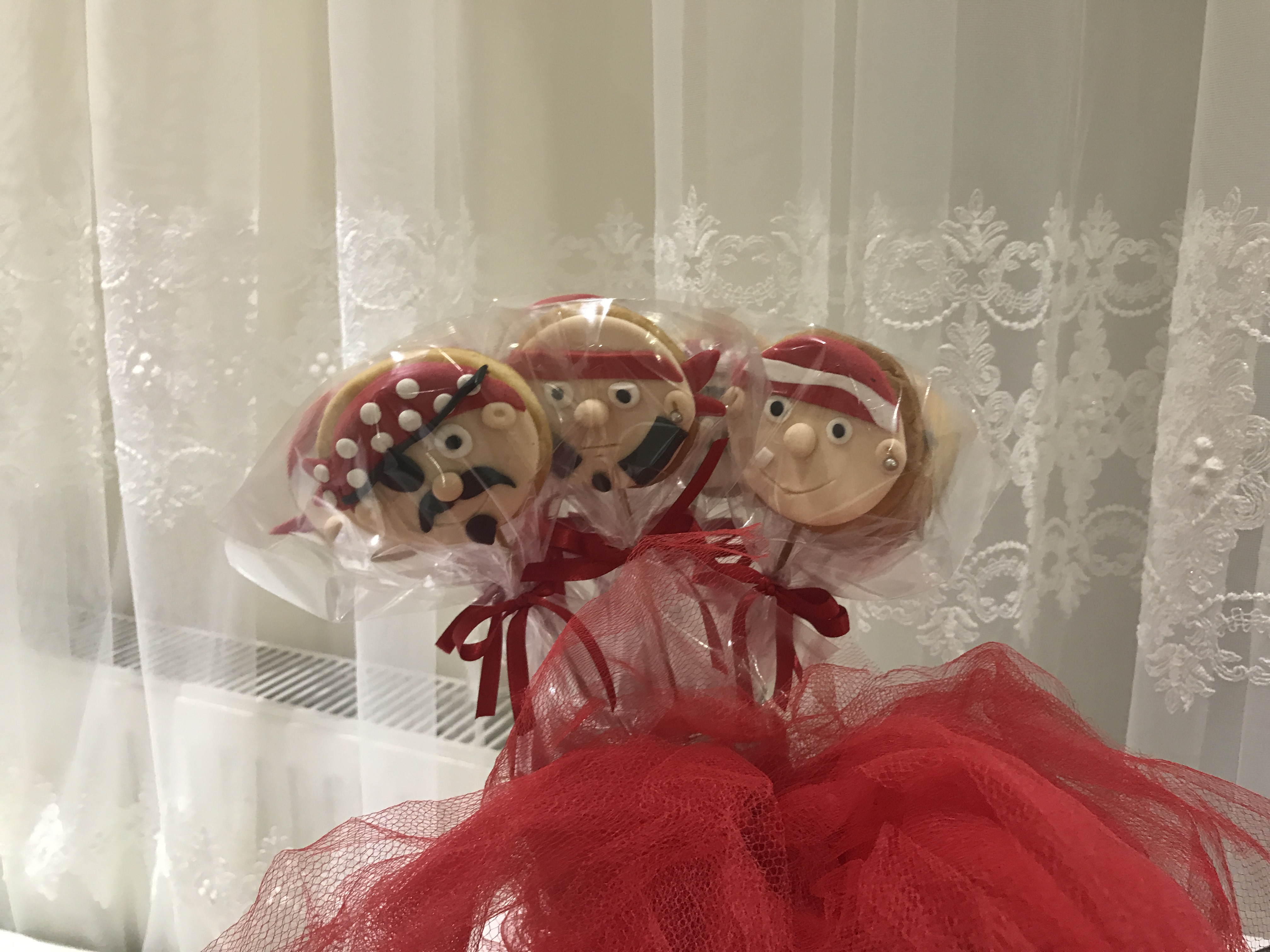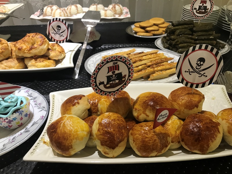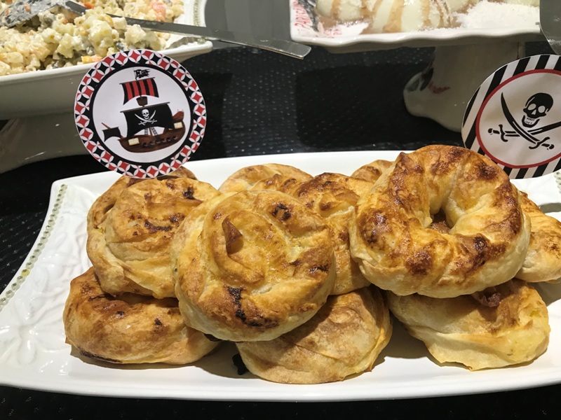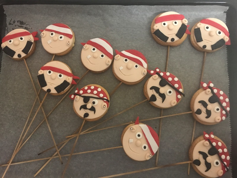 Sıra geldi yiyecek kısmına. Bu kısımda canım dostum bana yardım etti. Sabaha kadar hem muhabbet ettik hem iş yaptık 🙂 Önce kurabiyelerimiz. Bu sevimli korsan kurabiyeleri kim kıyıp yiyecek? Tarif burada.