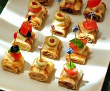 - Pişirilen krepleri rulo şeklinde sarın ve yaklaşık 2 cm kalınlığında kesin.