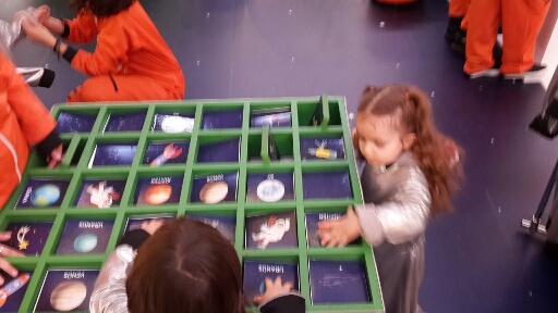 Eşleştirme çalışması da uzayla ilgili objelerin eşleştirilmesinden oluşıyor. Çocuklar bilgilerini bu eğlenceli oyunla pekiştiriyorlar. Hem eğleniyor hem öğreniyorlar.