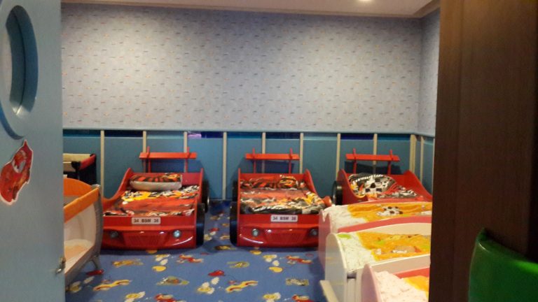 Hadi şimdi birazcık otelin çocuk alanlarını ve uygulamalarını tanıtalım. Otelin içerisinde bulunan kapalı alanından başlamak istiyorum. Alabildiğine geniş olan bu alanda, spor alanı, mutfak (her daim kurabiye ve poğaça çeşitleri, süt çeşitleri, meyve suyu çeşitleri, meyve çeşitleri ve meyveli yoğurt çeşitlerinin halihazırda bulunduğu), yemek yeme alanı, sanatsal etkinlik alanı (her gün birçok sanat etkinliği yapılmakta), playstation oyun salonu (buna bayıldım), masa tenisi alanı, uyku odası, 2 tv izleme odası, 2 farklı oyun ve oyuncak odası, bir yönetim odası ve çocuklara özel tuvaletleri mevcut. Bu kadar alan ana okullarında bile nadiren oluyor 🙂 Çocuk bu alanda istediği gibi vakit geçiriyor. Personel sabah 10 dan akşam 10’a kadar çocukların hizmetinde. Çocuklar için yok yok.
